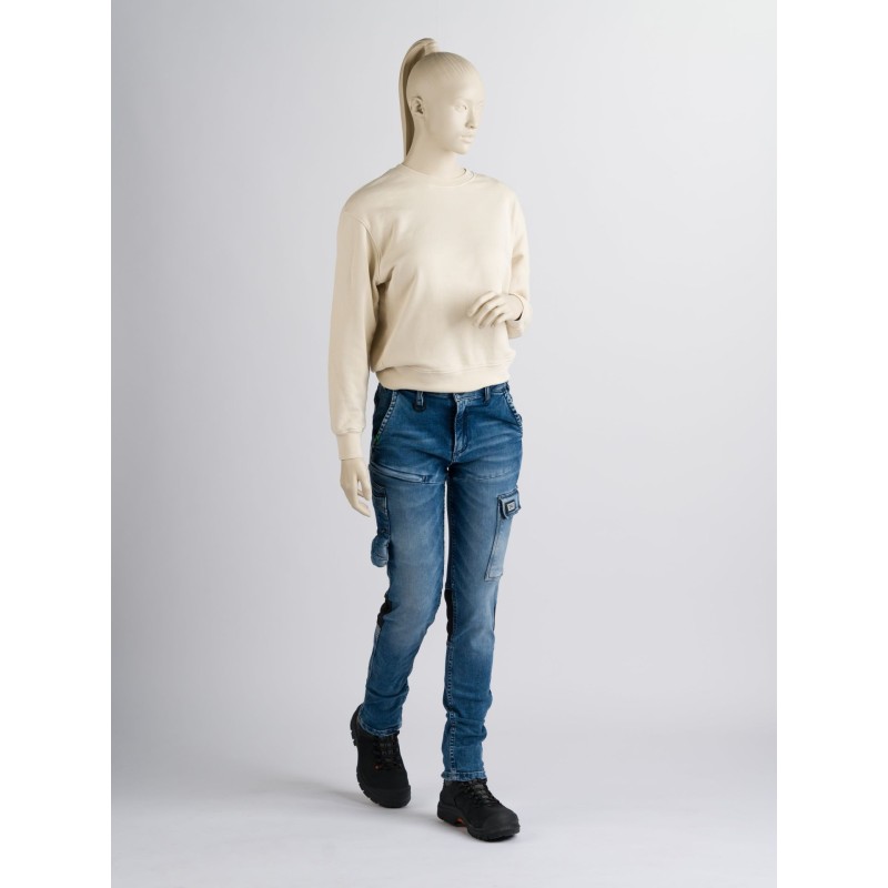 De 247jeans Panda is een elegante werkjeans voor dames met genoeg opbergruimte om gereedschappen, telefoon en mini-tablet altijd bij de hand te hebben. Daarnaast sluit de jeans mooi aan op het lijf, waardoor de werkbroek voelt als een casual jeans. De hoge mate van afwerking en de vele details zorgen ervoor dat je steeds iets nieuws ontdekt. Door de stretch denim stof ervaar je het comfort en de bewegingsvrijheid die je verwacht van een stoere en elegante werkjeans.