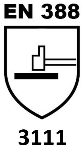 - Deze handschoen voldoet aan de volgende normen: EN 388 (3111)
