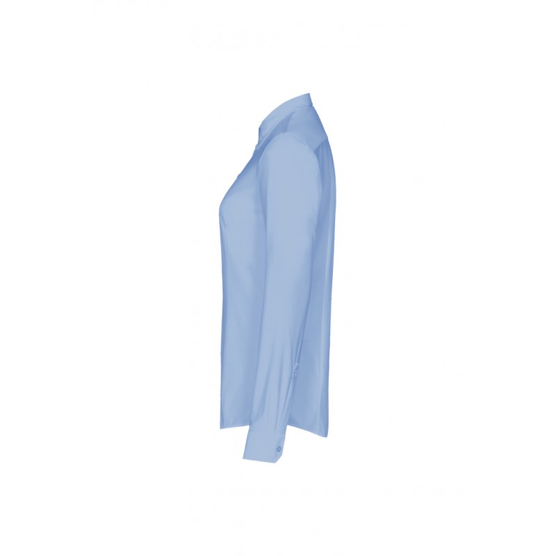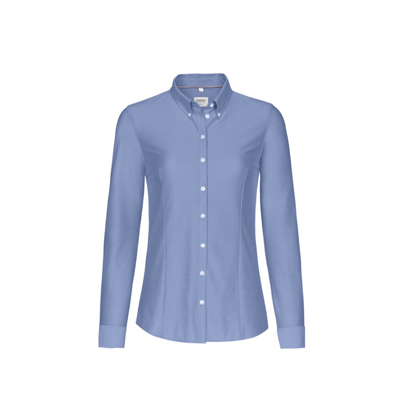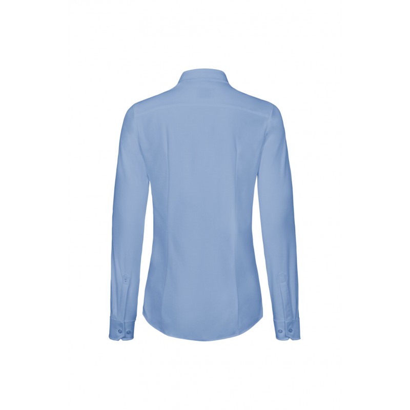 Blouse met lange mouwen met button-down kraag, zachte taps toelopende met prinsessennaad aan de voorkant en darts aan de achterkant, licht gebogen naad, verstelbare manchetten, stijlvolle biezen van donkerblauw satijn op de binnenste kraagnaad, hoogwaardige knoopstrip, dubbel schouderjuk, 4-gaats knopen (kruisgestikt en dubbel geknoopt voor extra stevige grip), reserveknopen, dubbel gekapte naden aan de zijkanten. Gemaakt van comfortabel zacht en gemakkelijk te strijken Jacquard breisel in een duurzame katoen-polyester mix. De speciale breitechniek zorgt voor een natuurlijke elasticiteit voor maximaal draagcomfort. Geweven HAKRO halslabel van hoogwaardig kettingsatijn met zachte, ultrasoon gesneden bandranden voor maximaal draagcomfort.