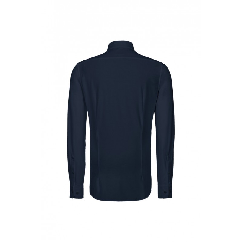Overhemd met lange mouwen en button-down kraag, zachte taps toelopende met pijlen op de rug, licht gebogen naad, verstelbare manchetten, stijlvolle biezen van donkerblauw satijn op de binnenste kraagnaad, hoogwaardige knoopstrip, dubbel schouderjuk, 4-gaats knopen (kruisgestikt en dubbel geknoopt voor extra stevige grip), reserveknopen, dubbel gekapte naden aan de zijkanten. Gemaakt van comfortabel zacht en gemakkelijk te strijken Jacquard breisel in een duurzame katoen-polyester mix. De speciale breitechniek zorgt voor een natuurlijke elasticiteit voor maximaal draagcomfort. Geweven HAKRO halslabel van hoogwaardig kettingsatijn met zachte, ultrasoon gesneden bandranden voor maximaal draagcomfort.