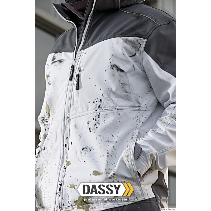 Drielaagse bescherming tegen slecht weer. De DASSY® Jakarta softshell staat voor een nieuwe generatie outdoor kledij: nog flexibeler, meer ademend en comfortabeler. Reken op een soepele bescherming bij slecht weer die u volgt in iedere beweging. *De stof is waterdicht, niet het volledige kledingstuk.