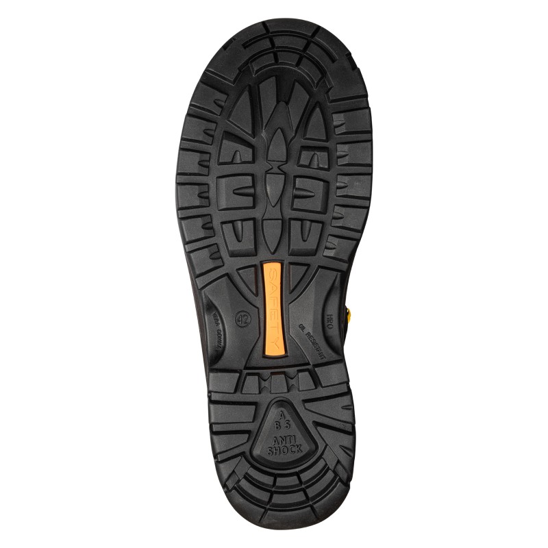 De werkschoen is uitgerust met een Heelsupport System voor extra ondersteuning in de hiel. De zool is gemaakt van PU/Nitril, hierdoor zijn de zolen extreem slip- en slijtbestendig.