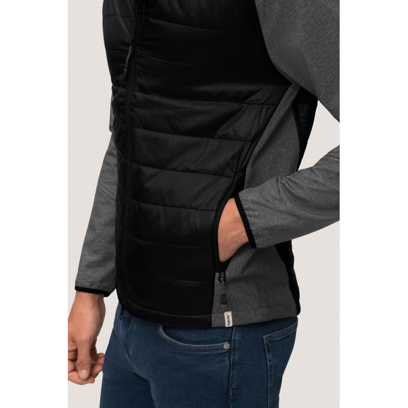 Licht, waterafstotend en ademend hybride jack met contrasterende raglanmouwen, inzetstukken aan de zijkanten, kraag en schouders, hoogwaardige tweewegritssluiting met interne windstop en ritsgarage en steekzakken met ritssluiting. Alle ritsen van YKK®. Zoomuiteinde met verlengde, afgeronde achterkant en reflecterende detials voor betere zichtbaarheid. In wijdte verstelbare zoom met tunnelkoord en stoppers. Gemaakt van een materiaalmix van ademende micro-ripstop met vulling van onderhoudsvriendelijke synthetische vezels en inzetstukken van rekbaar softshell-materiaal. Geweven HAKRO neklabel van hoogwaardig kettingsatijn met zachte, ultrasoon gesneden lintranden voor maximaal comfort.
