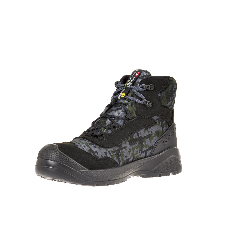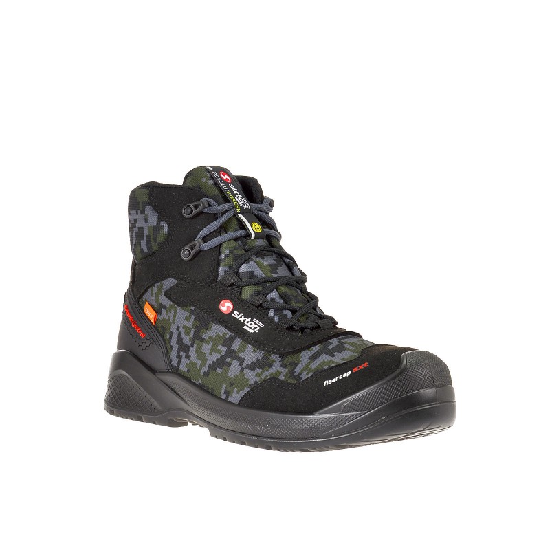 De Sixton Peak Adamant High werkschoenen uit de Resolute Green-lijn hebben een S3 SRC ESD veiligheidsnormering. Deze werkschoenen hebben een veiligheidsneus van FiberCap SXT glassfiber en een gerecycled polyester /microfiber suède upper. Deze upper heeft een waterafstotende coating, is ademend, soepel, lichtgewicht, duurzaam en onderhoudsvrij. Verder beschikken de werkschoenen over een 3D Green Air voering. De 3D Green Air voering is een voering die een zeer goed ademend vermogen garandeert, waarbij 60% van de polyestervezels afkomstig zijn van gerecyclede bronnen. Deze werkschoenen hebben een wijdte van 11 en een gewicht van 650 gram. De ADAMANT HIGH heeft een QRS02 Green inlegzool en een PU/PU, ESD-plus SRC loopzool.
