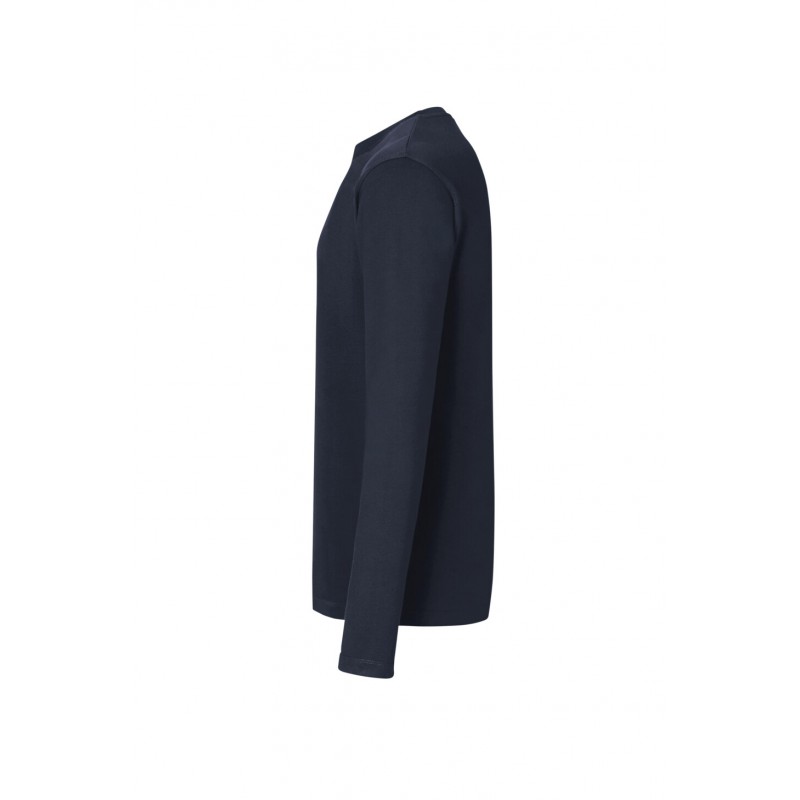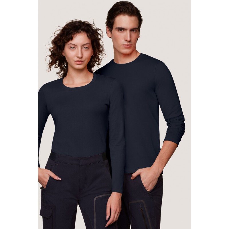 Bijzonder duurzaam shirt met lange mouwen met ronde halslijn, geribbelde manchetten en nekband. Leasekraag voor eenvoudige identificatie in de commerciële wasserij en ophangbanden in de zoom. Gemaakt van zware, bijzonder onderhoudsvriendelijke en functionele single jersey gemaakt van HAKRO's MIKRALINAR® performance materiaalmix. Geweven HAKRO-neklabel van hoogwaardig kettingsatijn met zachte, ultrasoon gesneden bandranden voor maximaal comfort en geweven HAKRO-vlaglabel op de linkerzijnaad.