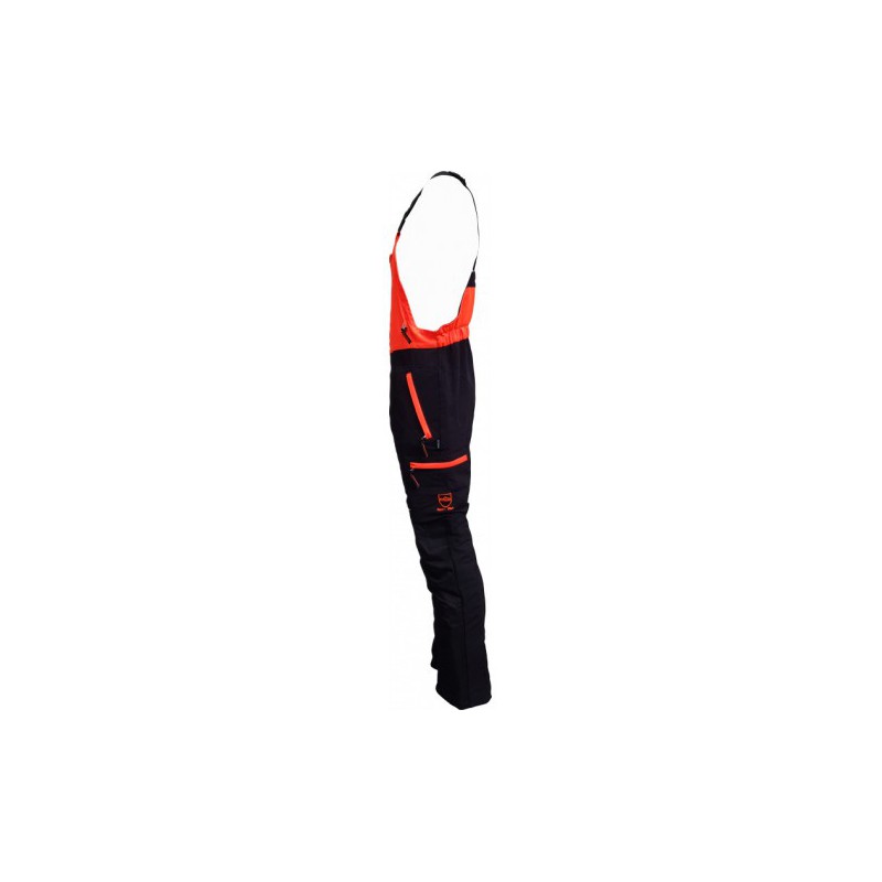 - Sticomfort zaagoverall zwart met fluoriserend oranje volgens EN 381-5 klasse 1.